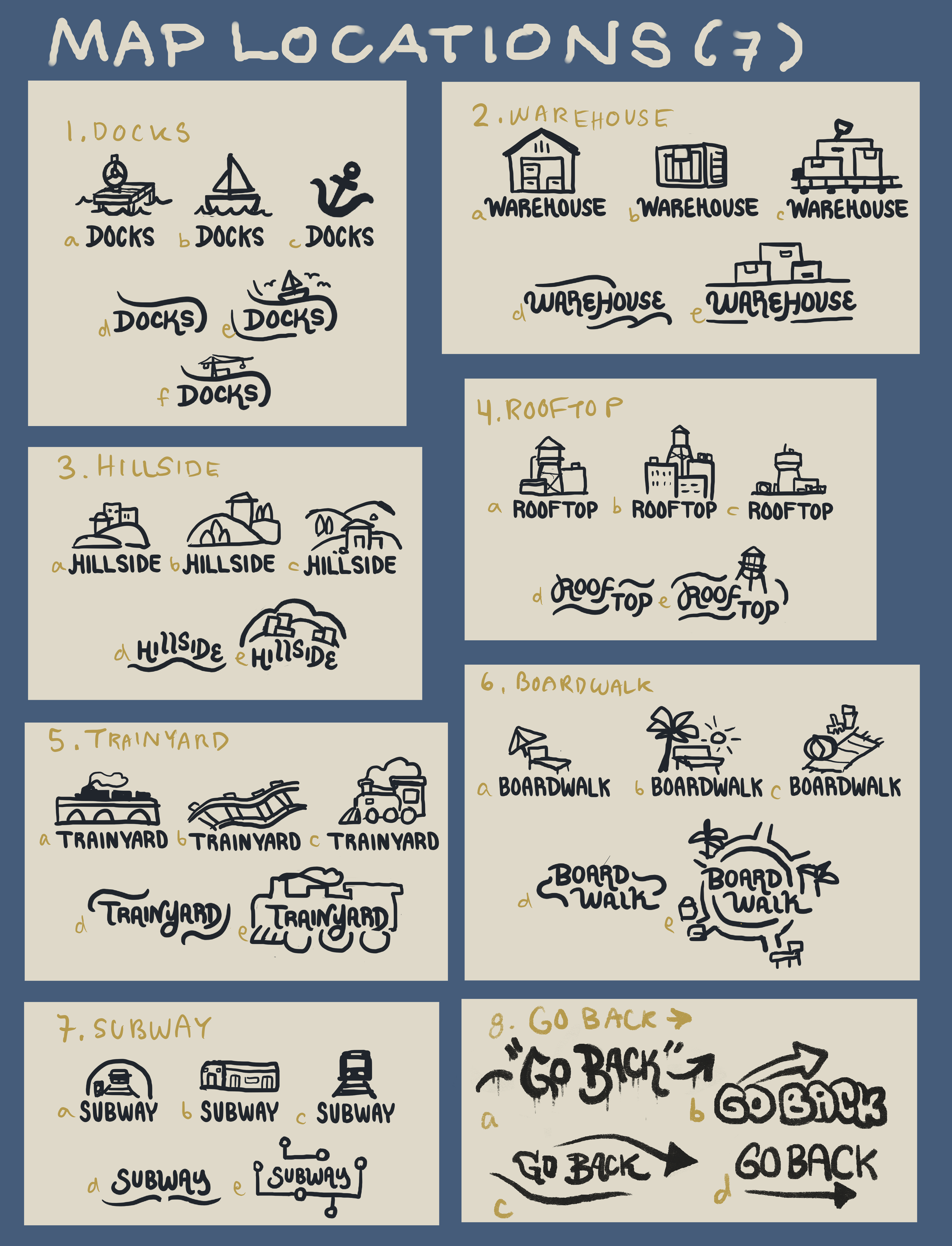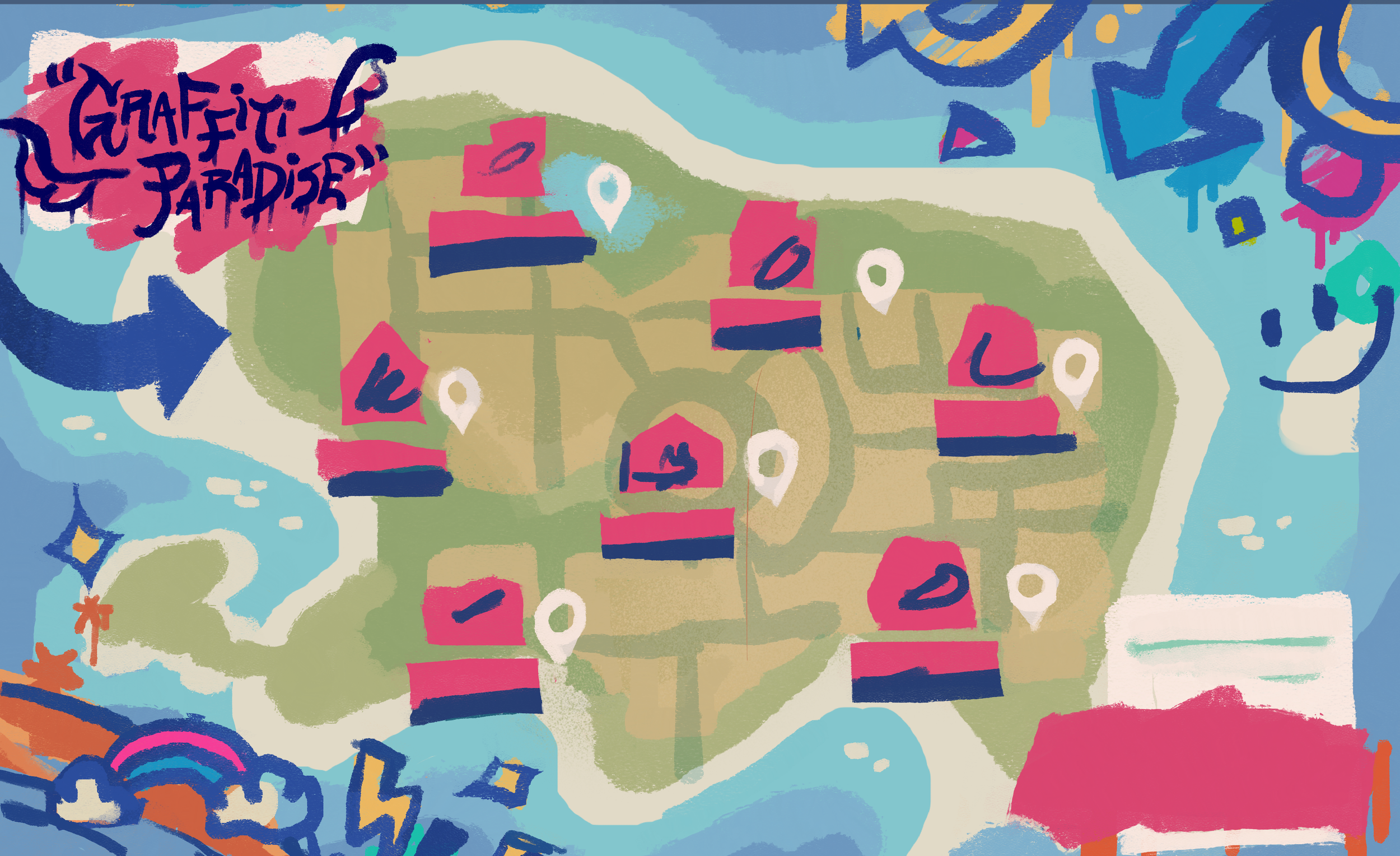 The following in-game map and vector assets were completed for Devon Wiersma’s Bombing!!2: A Graffiti Paradise. Bombing!!2 is a graffiti sandbox styled game currently available on steam. My contributions to this game consists of the interactive island map and 2D character/object assets that were placed in adverts spread throughout the game.