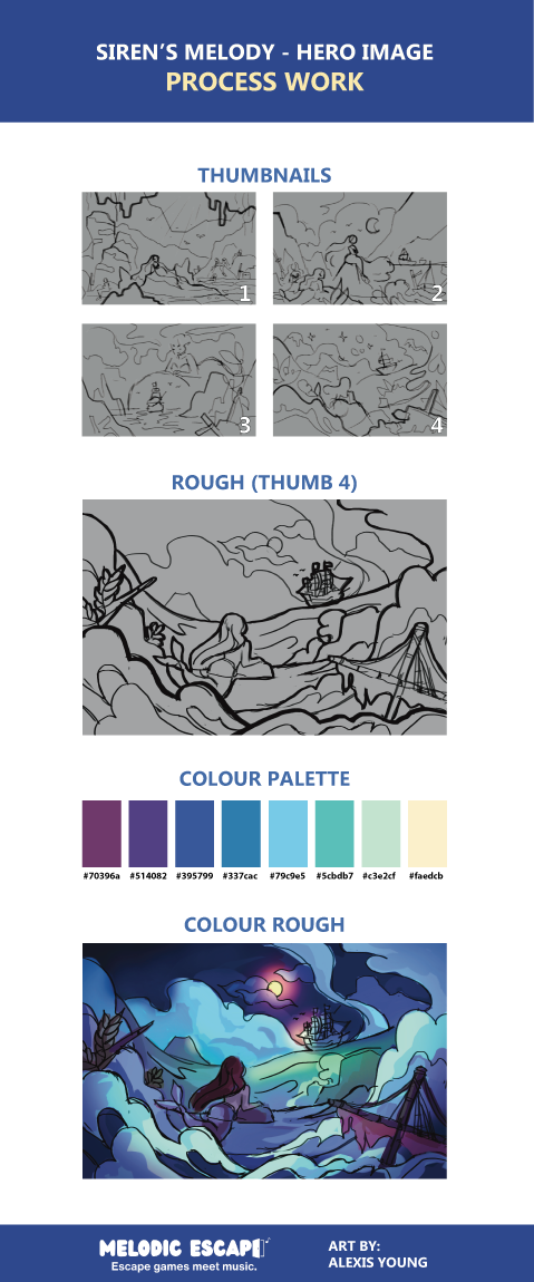 The following are a revamped hero image and 2D game assets that were commissioned by Melodic Escape for Siren’s Melody,